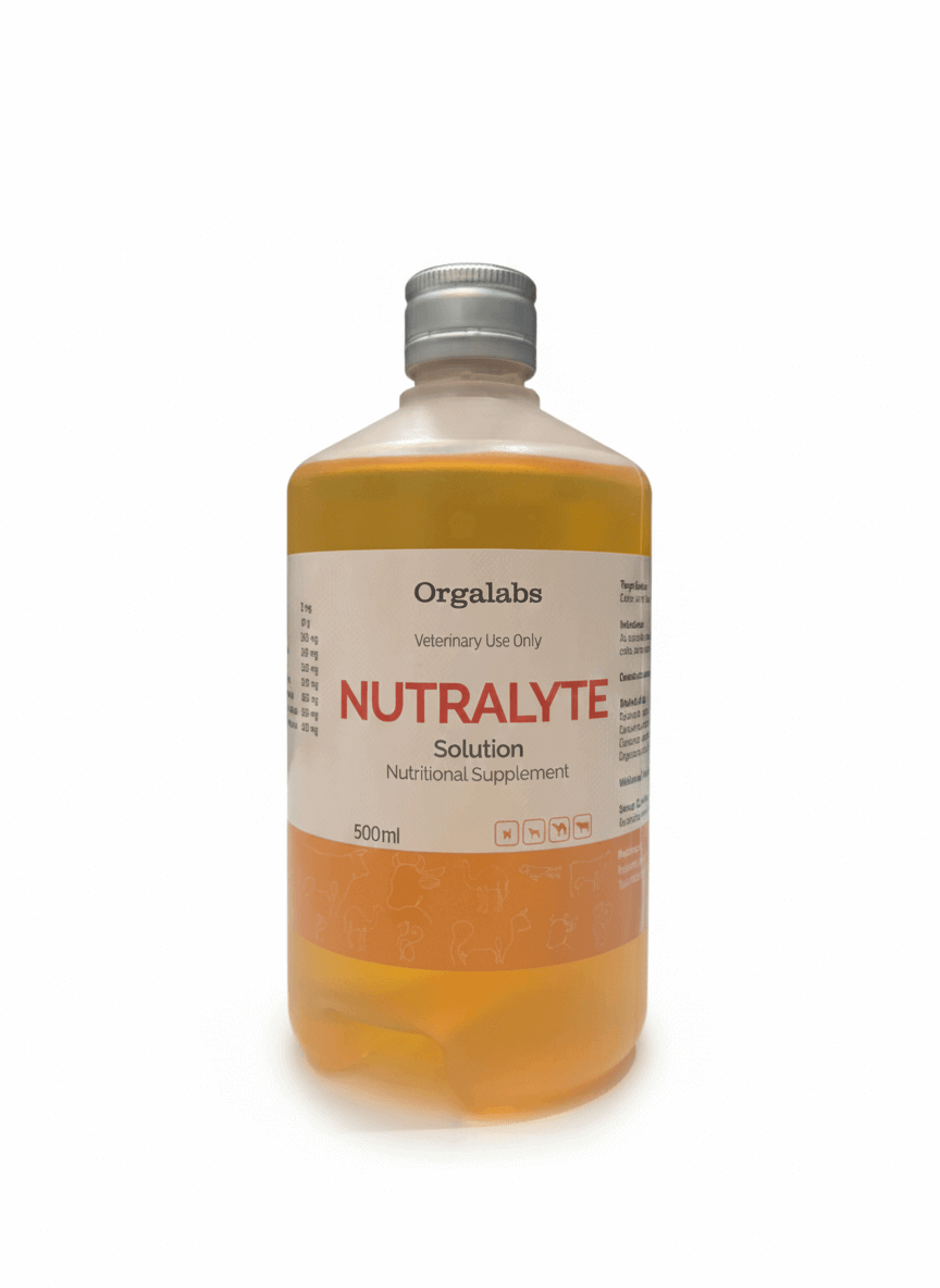 NUTRALYTE Injection is designed as a supportive maintenance therapy to replenish fluids, promote hydration, and aid metabolic stability in animals affected by dehydration, heat stress, transport stress, diarrhea, and other fluid-loss conditions. Its formula works quickly to restore biochemical balance and support recovery.